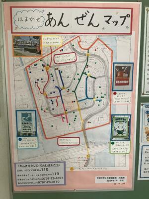 愛護部浜風班のみなさんが作成した安全マップを校舎1階に掲示しています。ご覧ください。