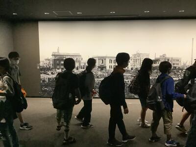 真剣な表情で聞いている姿が印象的でした。質疑応答の後は平和記念資料館の見学です。