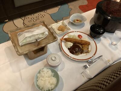 安芸グランドホテル着教育長のメッセージを披露した後、美味しい夕飯を食べました。