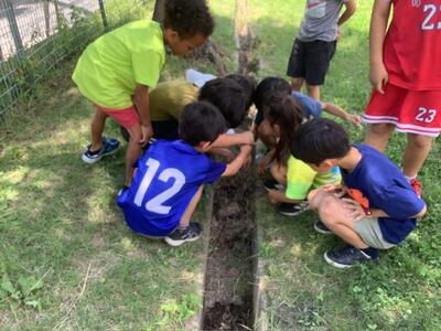 水分補給の際には手がドロドロで「水筒開けて飲ませて!」といった声も。とにかく元気いっぱいでした。