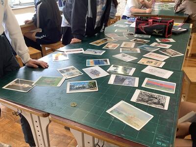 様々な絵が机に置かれており、出題者がヒントを言いながらどの絵かを当てていくゲームをしていました。