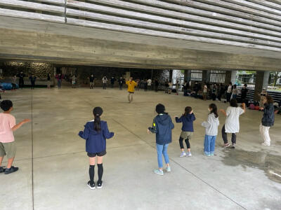 自然学校で踊るダンスをキャンプリーダーから教えてもらいました。早く覚えて、明日のキャンプファイヤーで盛り上がろう!