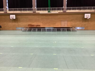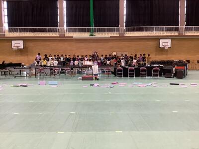 4年生がシートをひき、6年生が楽器を運び、音楽会の練習が体育館でできるようになりました。
