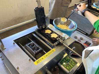 フェリーで宮島に行きました。しゃもじ焼印、もみじ饅頭手焼き体験を行いました。