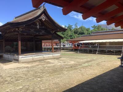 厳島神社に移動、参拝しました。参拝の後は、班ごとに自由散策。お土産を買いました。