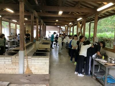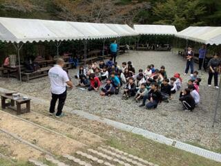 その後の鍋洗いですが過酷すぎるぐらいのチェックの厳しさで、前の学校ではどの班も一発合格がなかったそうです。今回みんなもチャレンジしましたが・・・なんと1組だけ一発合格がありました。記念のスッテカーをもらったのでどの班家はお楽しみ!反対に頑張ったのになかなか合格がもらえず放心状態になる班も・・・私も手伝いましたがそれでも合格は険しく合格した瞬間に「やったー、逃げろ!」というくらい頑張りました。そのあとはリーダーとの触れ合いやスタンツ練習などがあり充実した1日でした。ちなみに3日目疲れが出たのか、遅くまで起きていたのか、朝なかなか起きれない班も・・・今日はしっかり寝て明日に備えてほしいです