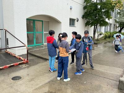 あいさつ活動始まりました 投稿: 編集長 (16:54) 朝、雨が降っていたのに、登校時に雨が止むという幸運 児童会の子どもたちが、「あいさつ運動始めます」と元気よく外に出てきました。 みんな楽しそうに、また照れながらも楽しいあいさつ運動を行ってくれました。 こちらも元気をもらいました。 Tweet -