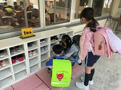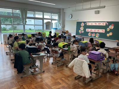 1年生の初登校 投稿: ルーム管理者 (14:35) 今日から1年生が登校してきました。 児童会の子どもたちも朝からボードを使ってのあいさつがかわされていました。 お兄さんやお姉さんが教室まで連れて行く様子も微笑ましいです 教室の様子です。 水道の使い方など学校生活のお勉強 最後は元気にあいさつして下校しました。 Tweet -